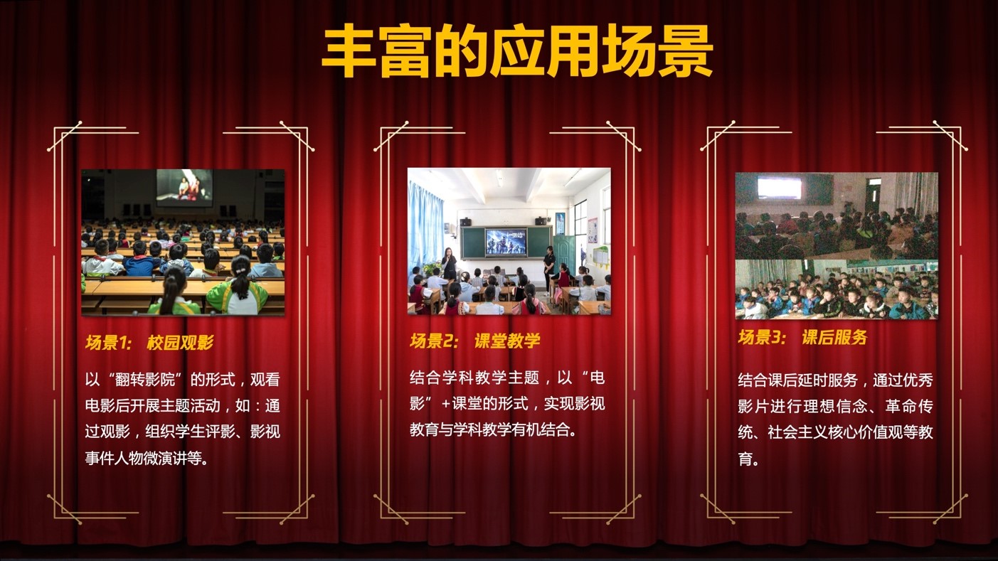 z6com·尊龙凯时校园影院可面向校园观影(比如主题班会、、、、思政课堂、、、、德育课堂等)、、、课堂教学、、、、课后服务,,可满足多场景观影活动。。。