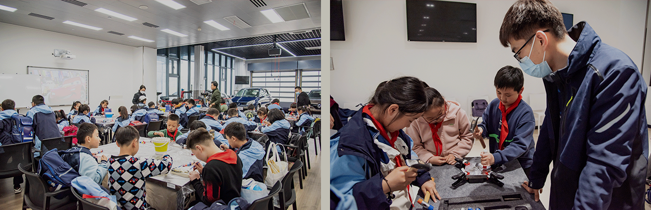 本次活动,,后宅小学3-6年级学生走进艺术设计学院、、、、汽车与智能交通学院、、、智能工程学院和大学生活动中心参与了艺术设计与创作、、、汽车制造与维修、、、、现代工业智能制造等工业研学活动。。。。