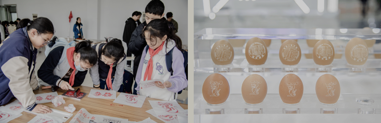 同学们在智工学院体验了精雕细琢之蛋雕、、、、艺术拓印、、、、解密鲁班锁、、、人机协同、、、小小交通灯等项目,,,了解机电技术在实际生活中的应用过程。。