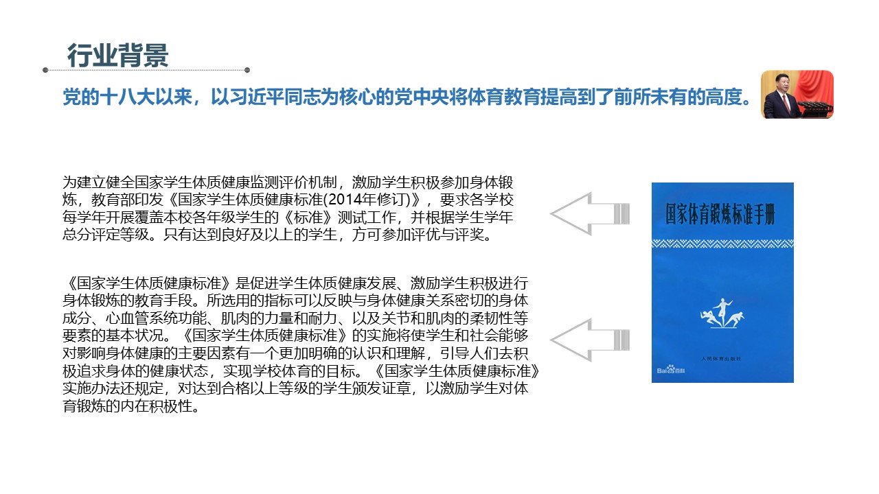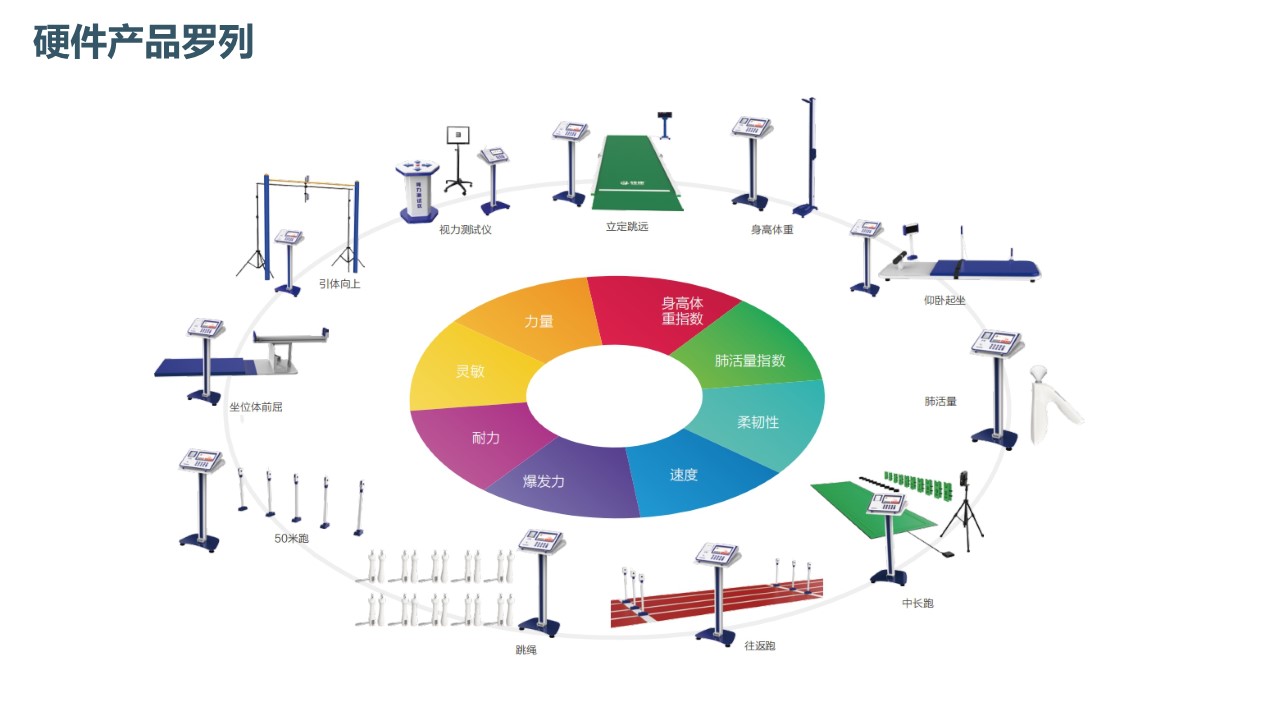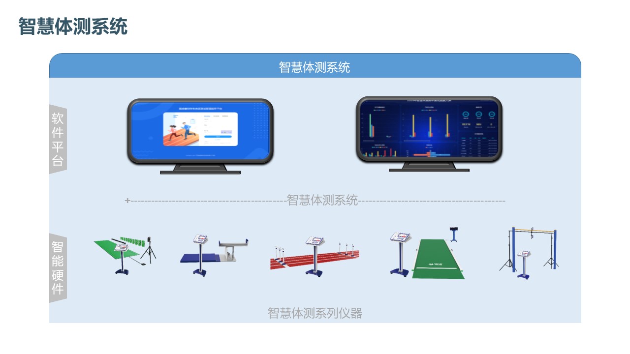 智慧体测系统由体质测试硬件设备和智慧体测云平台组成,,,帮助教育部门和学校全面清晰了解学生体质健康水平,,,,优化教师课程设计提升班级体测水平,,,,为学生提供个性运动指导方案及相关课程。。