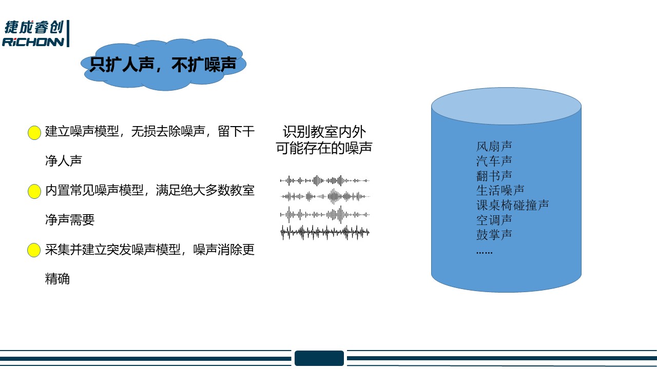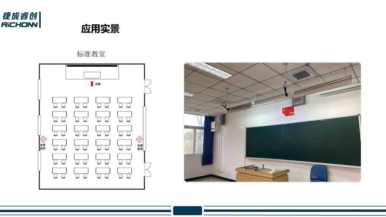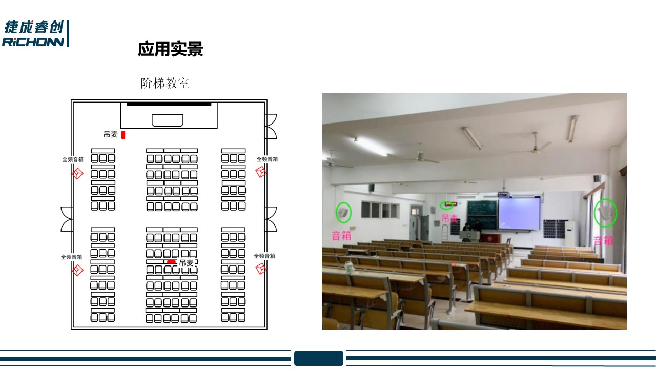 智慧扩声系统由扩声主机、、阵列麦克风及指向性音箱所组成,,通过提高教室声场均匀度,,,提升声音传输质量,,,有效缓解教师嗓音问题提升课堂效率。。。